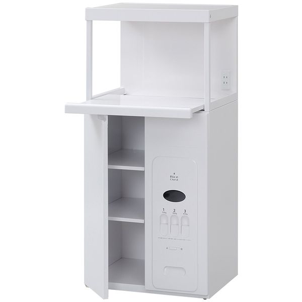 ■サイズ:幅56.5×奥行き50×高さ121.5cm ■重量:18.5kg ■素材・材料:本体:鋼板(樹脂焼付塗装) 扉・引き出し前面板:ポリスチレン 扉:鋼板 天板・スライドテーブル:着色亜鉛鋼板 ■付属品や、仕様など【2口コンセント付】 ・2口で合計1500W ●米びつが付いた家電ラック。