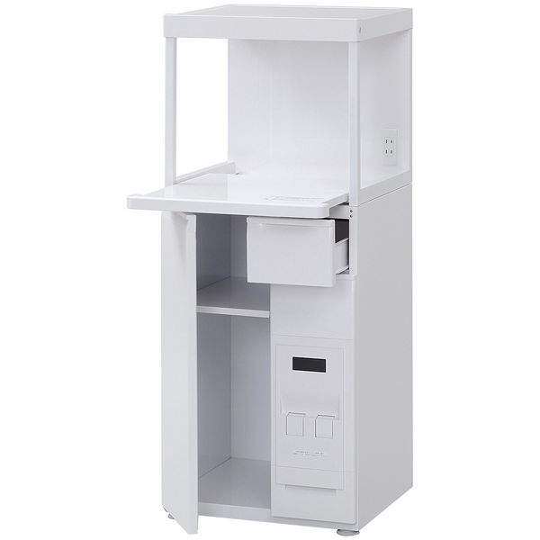 ■サイズ:幅48×奥行き48×高さ116.5cm ■重量:16kg ■素材・材料:本体:鋼板(樹脂焼付塗装) 扉・引き出し前面板:ポリスチレン 扉:鋼板 天板・スライドテーブル:着色亜鉛鋼板 ■付属品や、仕様など【2口コンセント付】 ・2口で合計1500W ●米びつが付いた家電ラック。